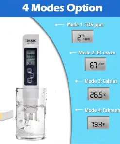 Multi-functional: Provides accurate and reliable test readings; 3-in-1 digital tds meter provides accurate readings for TDS (total dissolved solids) EC (electrical conductivity) and temperature.