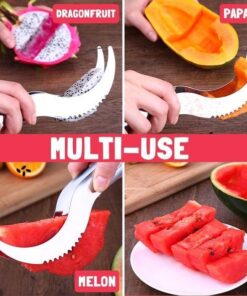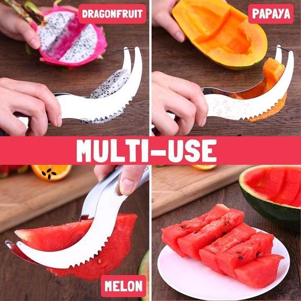 Make clean and quick slices in watermelons, cantaloupes, honeydews, cake and more without breaking a sweat! Easy slicing and carving fruits.