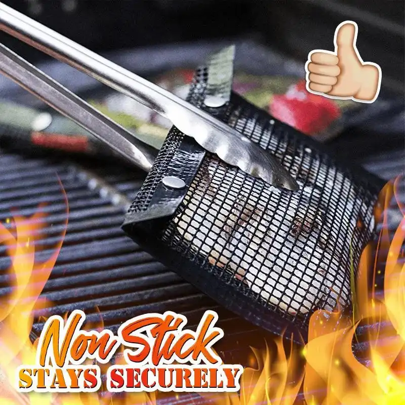 These WellCook BBQ + Baking Mesh Bags for grill keeps all your barbecue creations away from falling through the grates! This bag is made of premium mesh materials– Enjoy 360° cooking with even heat! Keep your grill looking brand-new and no more clean-up of your dirty grill!