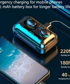 Feature : Auto Pairing + touch control, Bluetooth 5.0 + 2200 mAh Charging Case, HIFI Stereo +IPX7 Waterproof