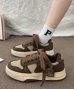 Women’s Board Shoes Women’s Sneakers New Muffin Thick Bottom Khaki Black White Color Matching Fashion Women’s Shoes Casual Sports Shoes