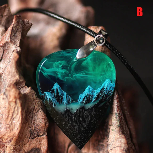 Wood Resin Paired Heart Pendants Mountains has the following product features: