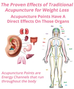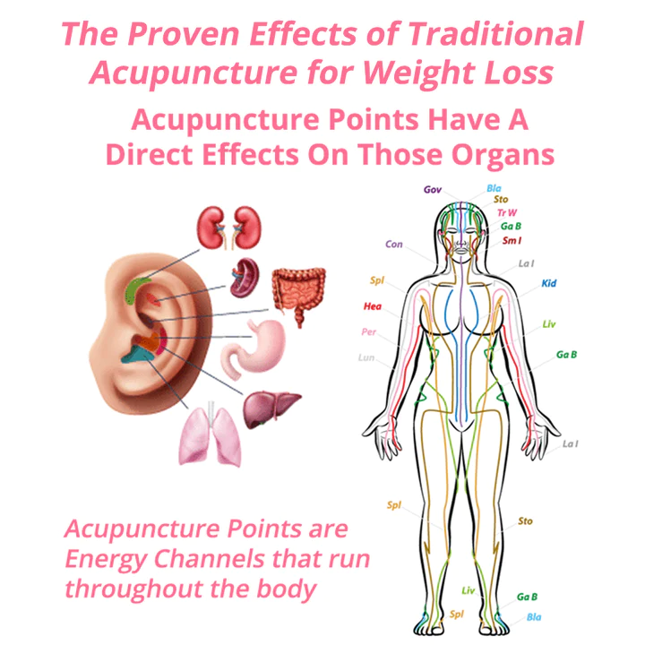 Acupuncture points are believed to stimulate the body’s organs and systems by influencing the flow of qi, or vital energy, throughout the body. Qi flows through meridians, which are energy channels that run throughout the body and are connected to the body’s organs and systems. This stimulation can activate the body’s natural healing processes and help restore balance to the body’s systems. With the stimulation of the specific acupuncture point, it is able to improve digestion, which could lead to improved metabolic function and weight loss.