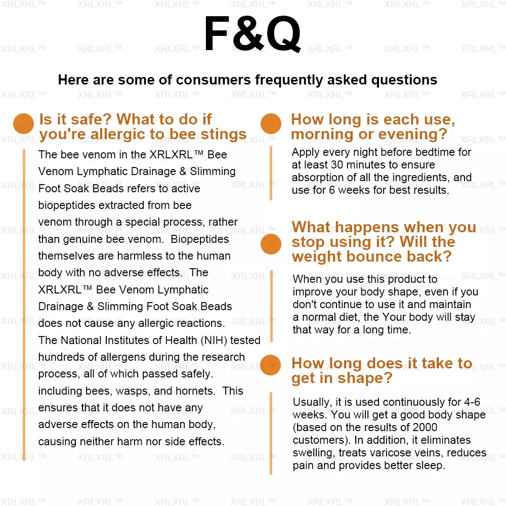 - Lucy Taylor from London shared, “After years of battling lymphedema, I tried the XRLXRL™ Bee Venom Foot Soak Beads, and in just one day, the swelling in my foot reduced significantly. By the second week, the lymphatic flow was visibly better. This product has given me renewed hope—I’m so glad I found it!”