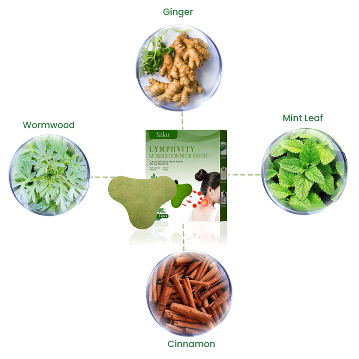How does Yaku Wormwood Lymphvity Moxibustion Neck Patch works?