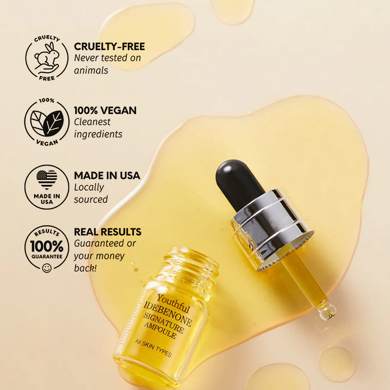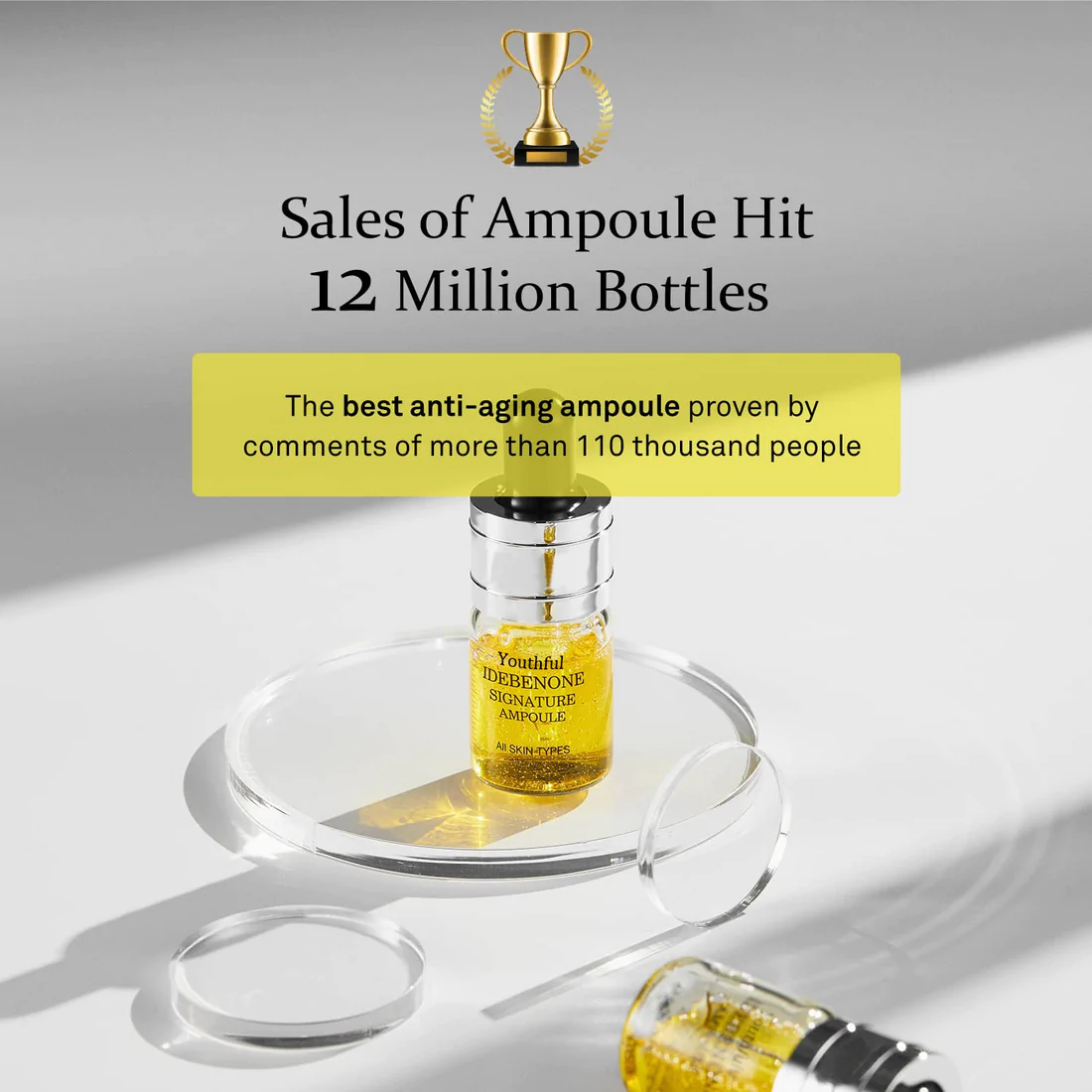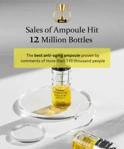 - Press the cap of the Ampoule and shake the bottle to let the yellow substance mix well with the clear liquid. Drop a suitable amount by using a pipette and evenly apply it after arranging the skin texture in the morning and evening. Pat skin gently for better absorption.