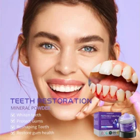 YUNPSO™ Teeth Restoration Mineral Powder targets 99.99% of oral bacteria, addresses bad breath, removes plaque and tartar, treats gingivitis and periodontitis, alleviates tooth pain, prevents and repairs cavities, restores enamel, promotes dentin regeneration, and supports the regeneration of lost teeth.