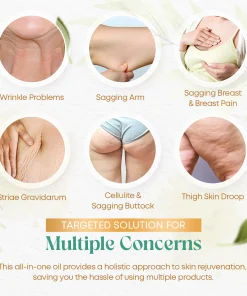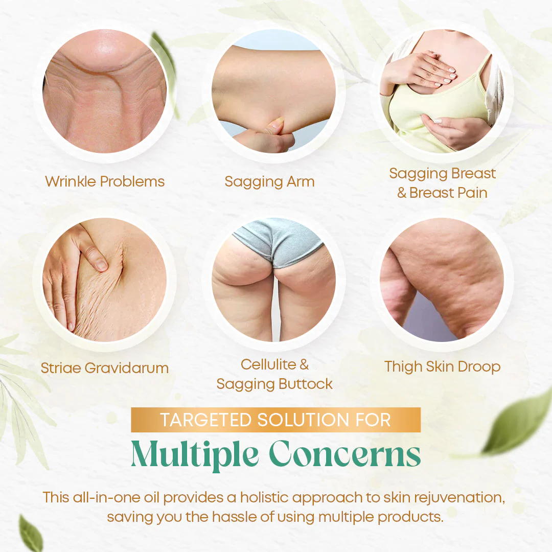 - Massage a small amount of Zakdavi™️ CollagenPlus Lifting Body Oil onto areas like breasts, butt, thighs, or other problem spots.