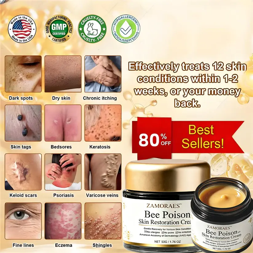 But ZAMORAES™ Bee Poison2.0 Skin Restoration Cream really worked! After using it for two weeks, the bruises started to fade, and I wasn’t getting new ones as often. It doesn’t sting or feel greasy, and my skin is now much softer, smoother, and more hydrated—even the dry, wrinkled areas improved.