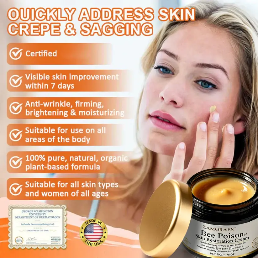 ZAMORAES™ Bee Poison2.0 Skin Restoration Cream addresses all the problems associated with sagging skin, wrinkles and more!