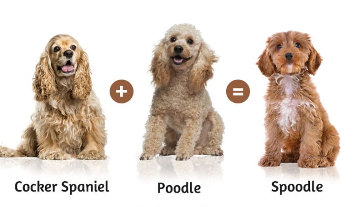 The Spoodle or Cockapoo is a hybrid of Cocker Spaniel and Miniature Poodle. Cocker spaniel can range from an English to an American spaniel.